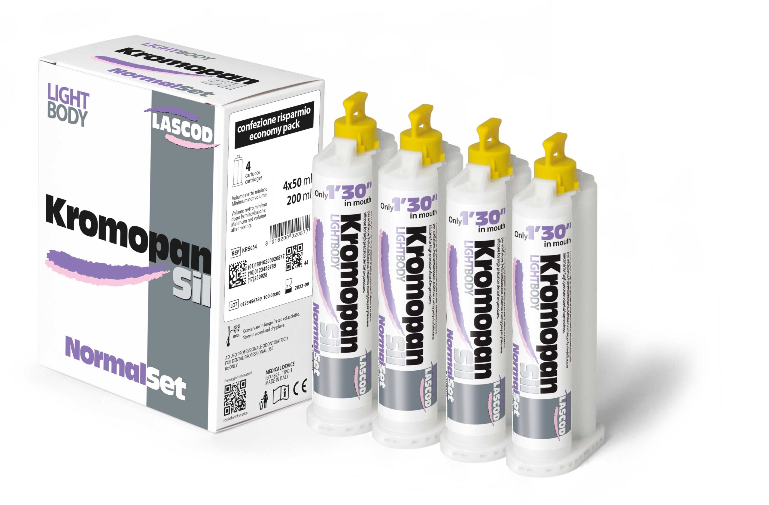 Tillverkare:LASCOD- Italy Tillv. Artnr:KRS054 Information:Kromopan Sil A-Sil light body Economy Pack (4x50ml)- Normal Set.